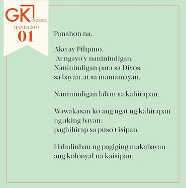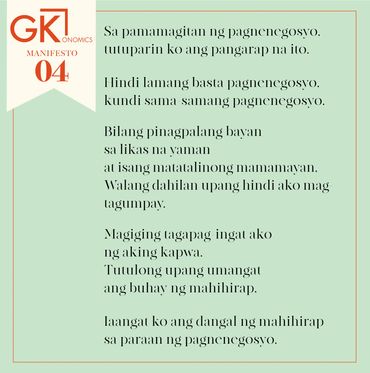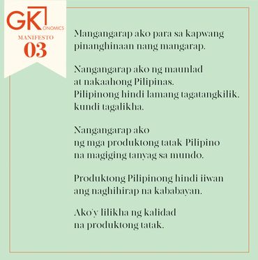 The GKONOMICS Manifesto was recited in Tagalog in this video by the students of the Dagatan Family Farm School in Lipa, Batangas in 2019.