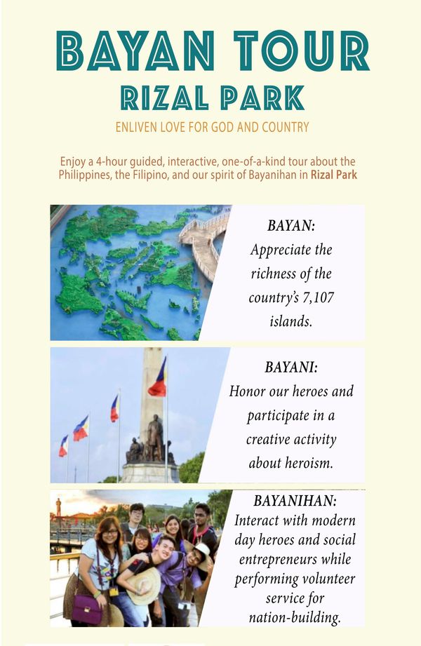 Students from all levels (Grade 1 though College) will be enriched by this one-of-a-kind patriotic educational tour experience in Rizal Park.